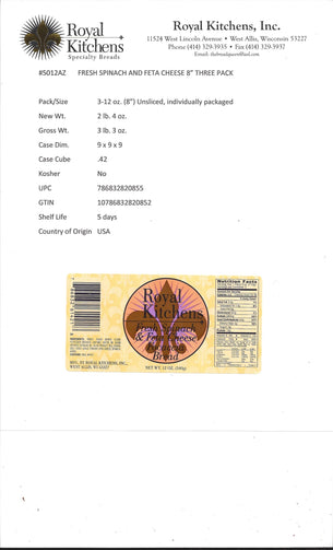 Fresh Spinach and Feta Cheese Focaccia 8” Three Pack