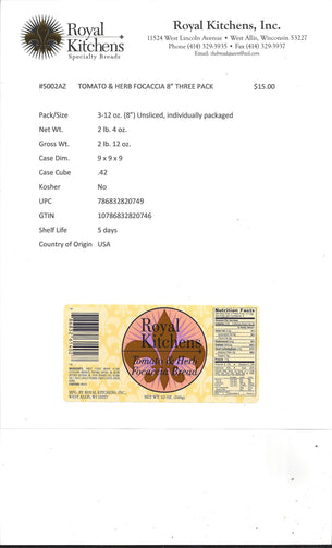 Royal Kitchens Focaccia bread is unique, hand-crafted Italian flat bread; individually oiled and decorated.