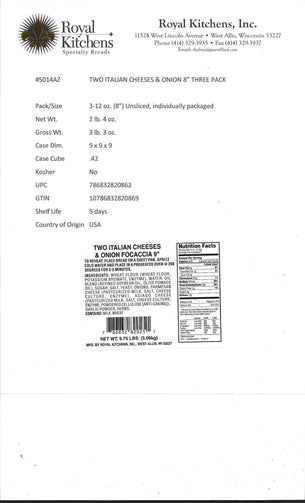 Two Italian Cheeses and Onion Focaccia 8” Three Pack